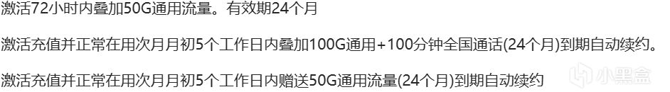 这是一个205+30的流量卡,这205通用里面,只有150g流量是到期自动续约的,而另外的50g则是只有两年的优惠期,所以这张卡的套餐应该解读为两年29/235,而后变为长期的29/185(上面图中应该少写了5g流量)