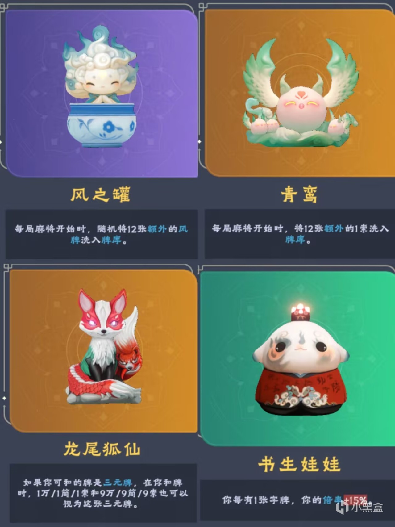 書生娃娃則和字一色完美契合,增加倍率。14張手牌都是字牌保底提供2.1的倍率,如果多次加槓,手牌數甚至能遠遠超過14,提供更高的倍率。