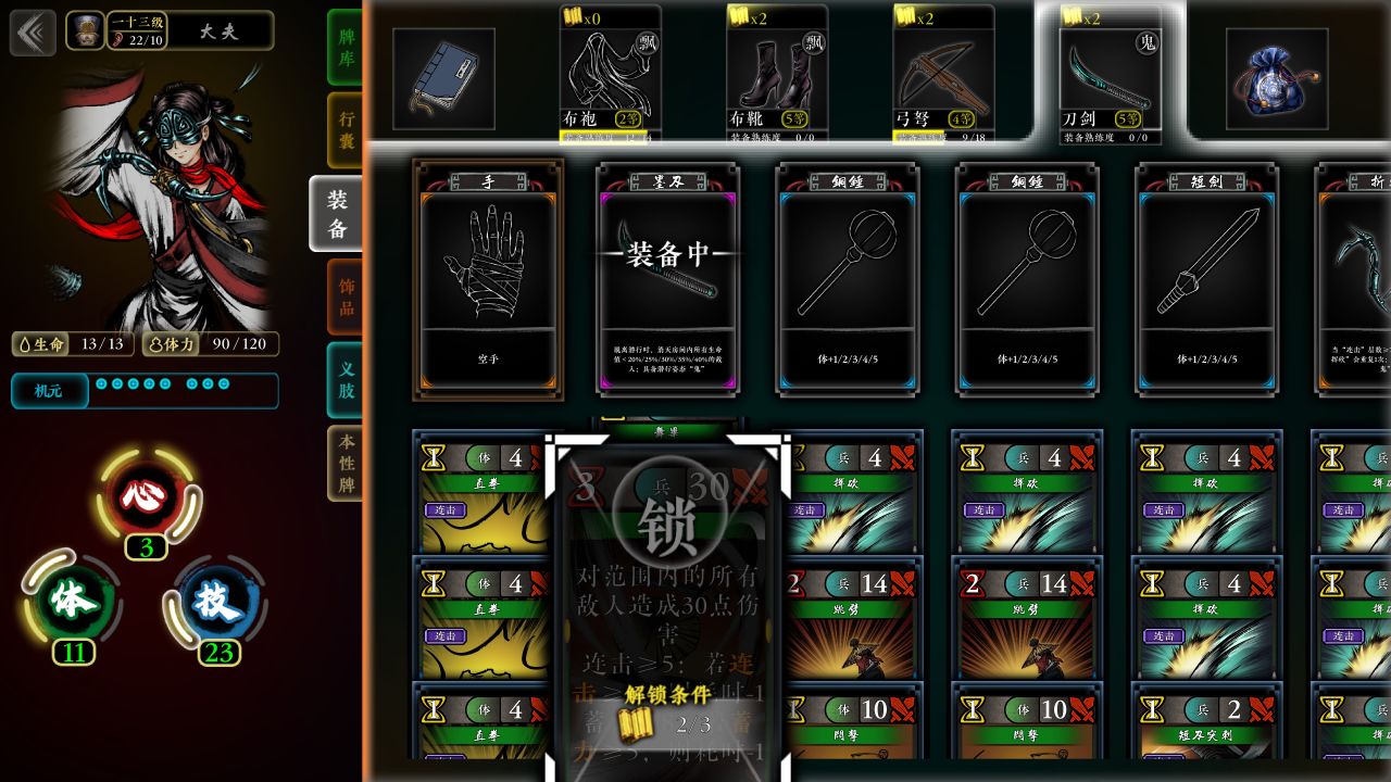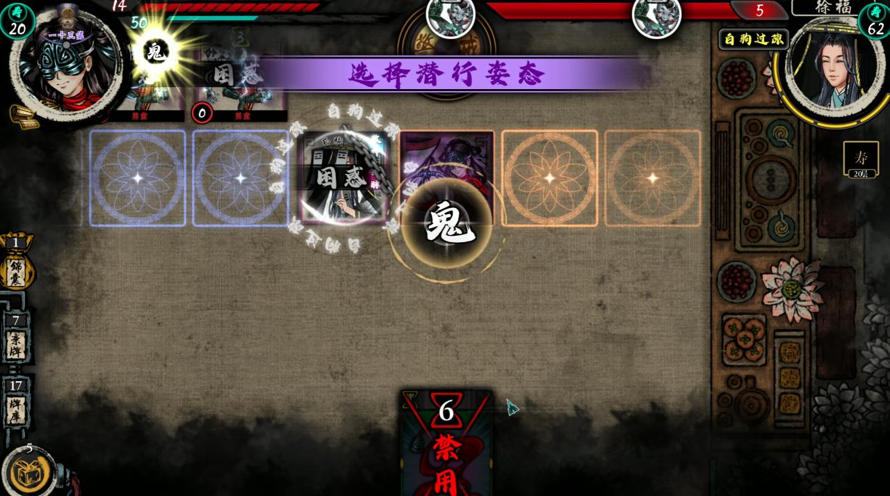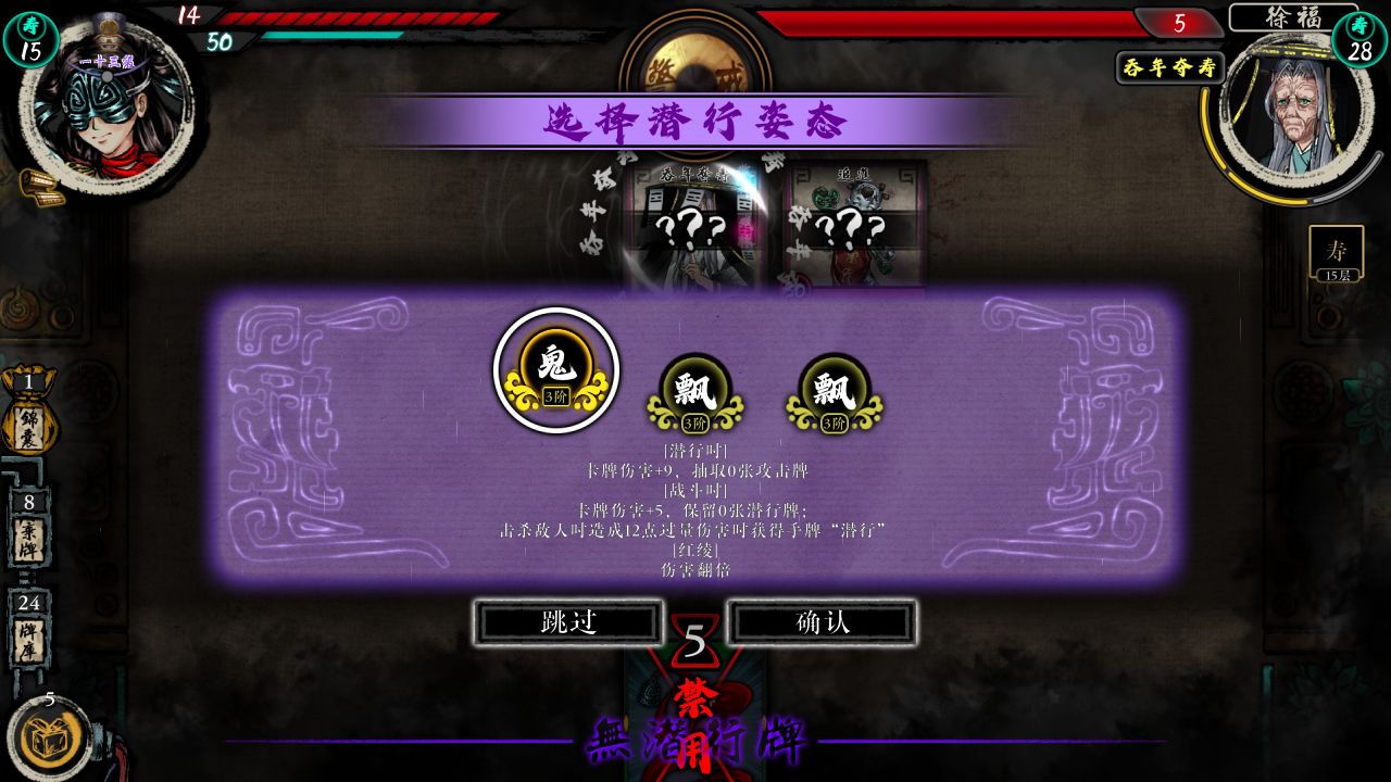 上文提到,《諸子亡秦》的DBG卡組由武器的衍生卡牌構成,於是當你裝備了帶有潛行卡牌的裝備,就能夠化身陰影中的刺客,狠狠地將他們一口氣做掉!