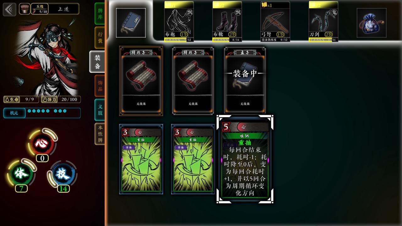 更爲有趣的是,在裝備中還有着以諸子百家學說爲核心的“心法”牌。