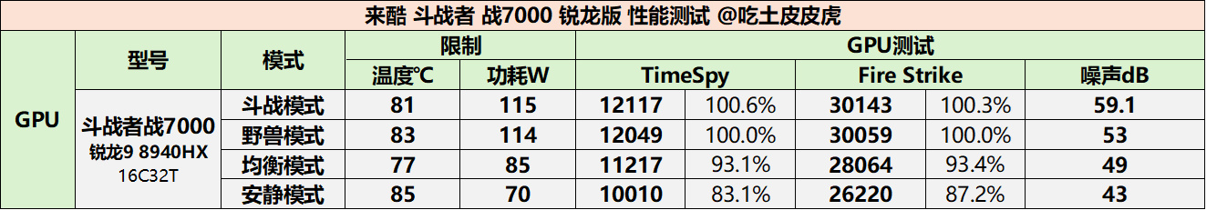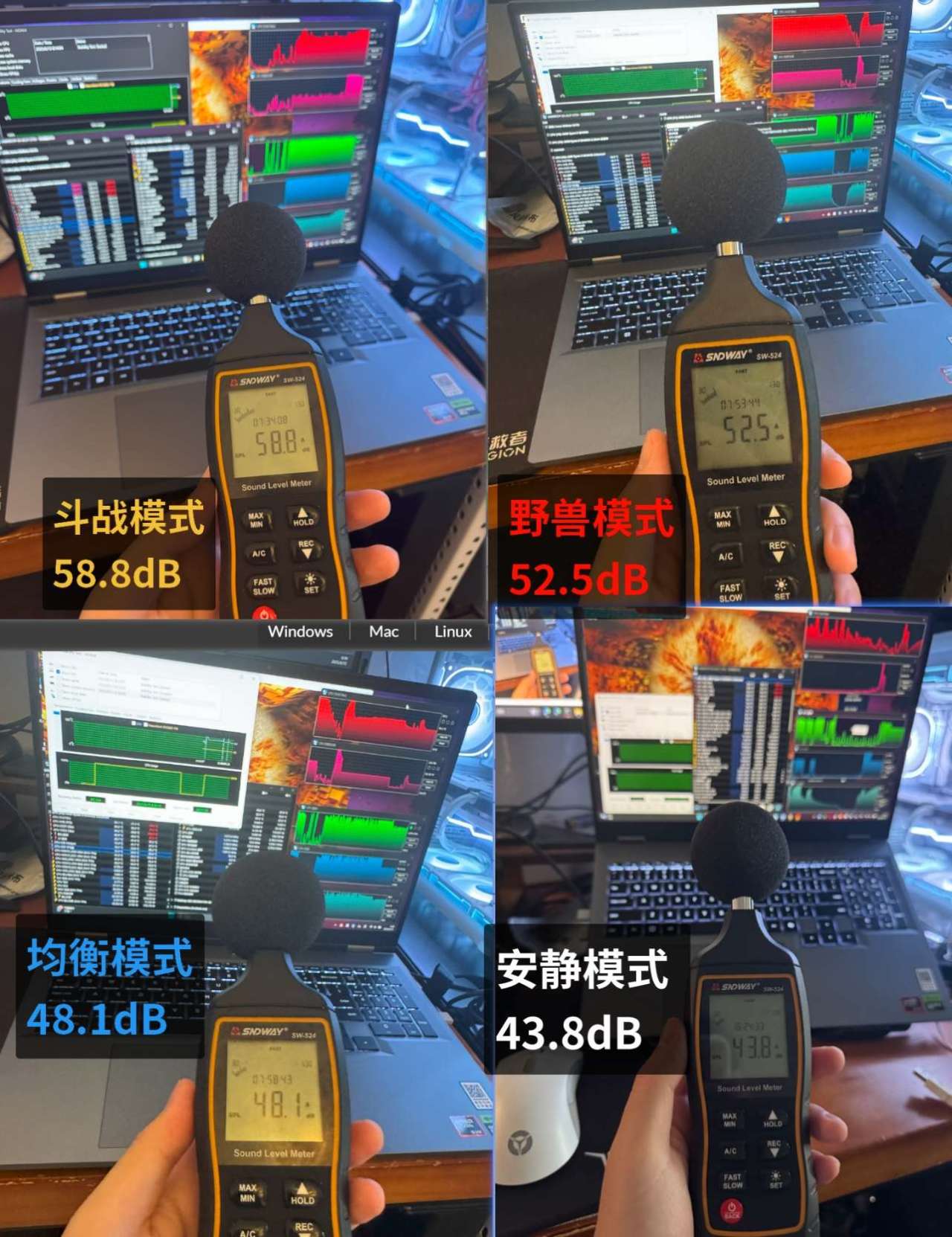 在前面的跑分测试里,斗战模式的性能提升并不是很明显,但是噪音多3分贝(功率翻倍),其实很影响听感。