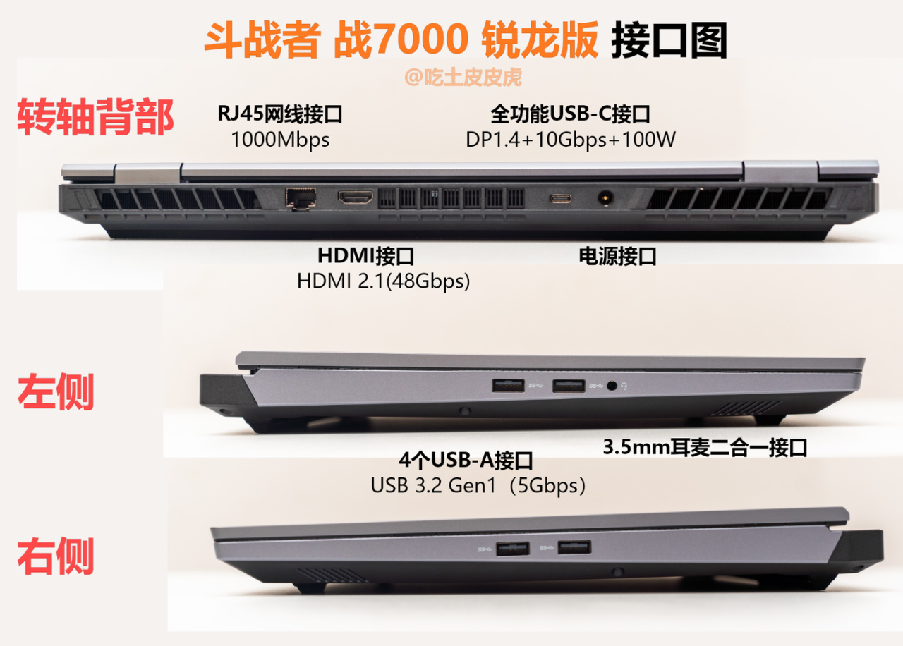 接口设计,倒是很像拯救者,四个USB口对称式地放两边了。