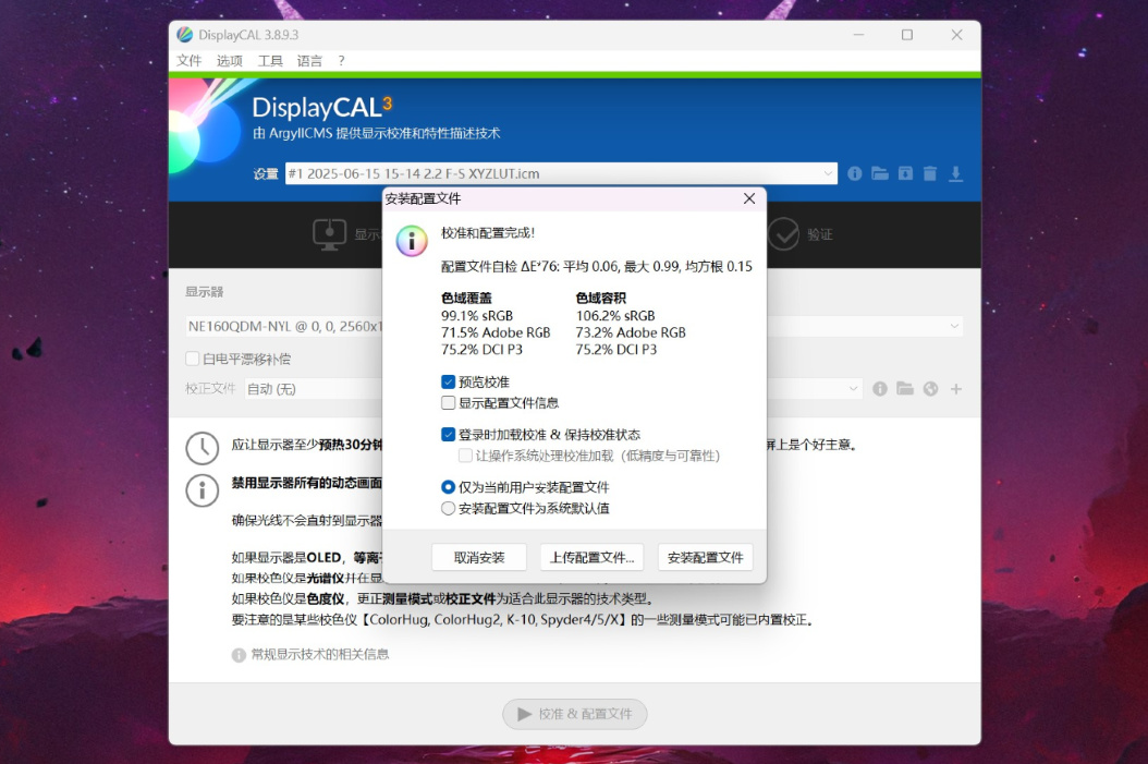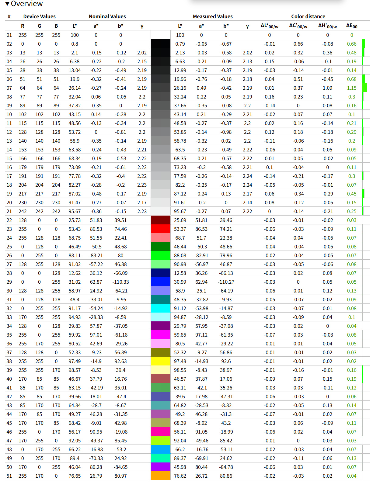 屏幕色准还行,平均ΔE约为0.17,但是测试报告里显示,存在一定程度的白点偏离,颜色略微偏向品红。