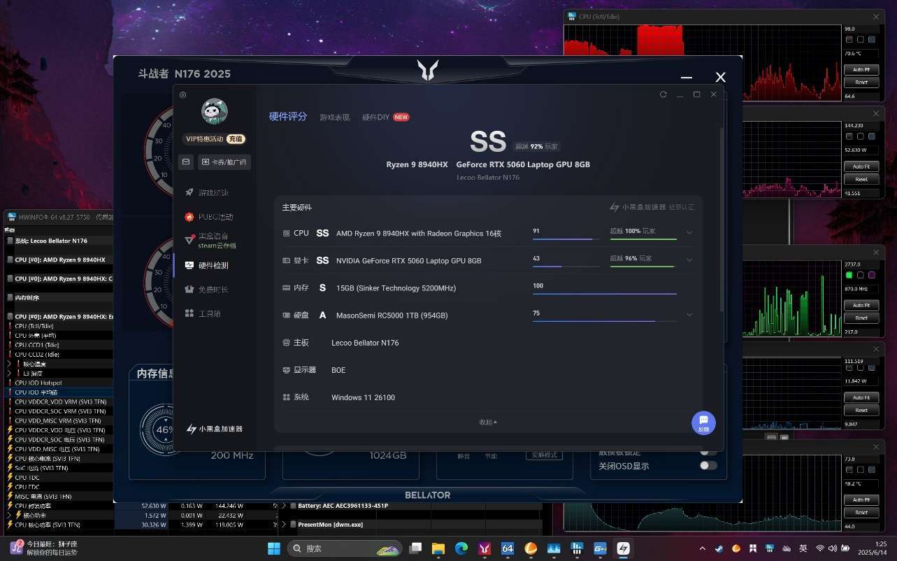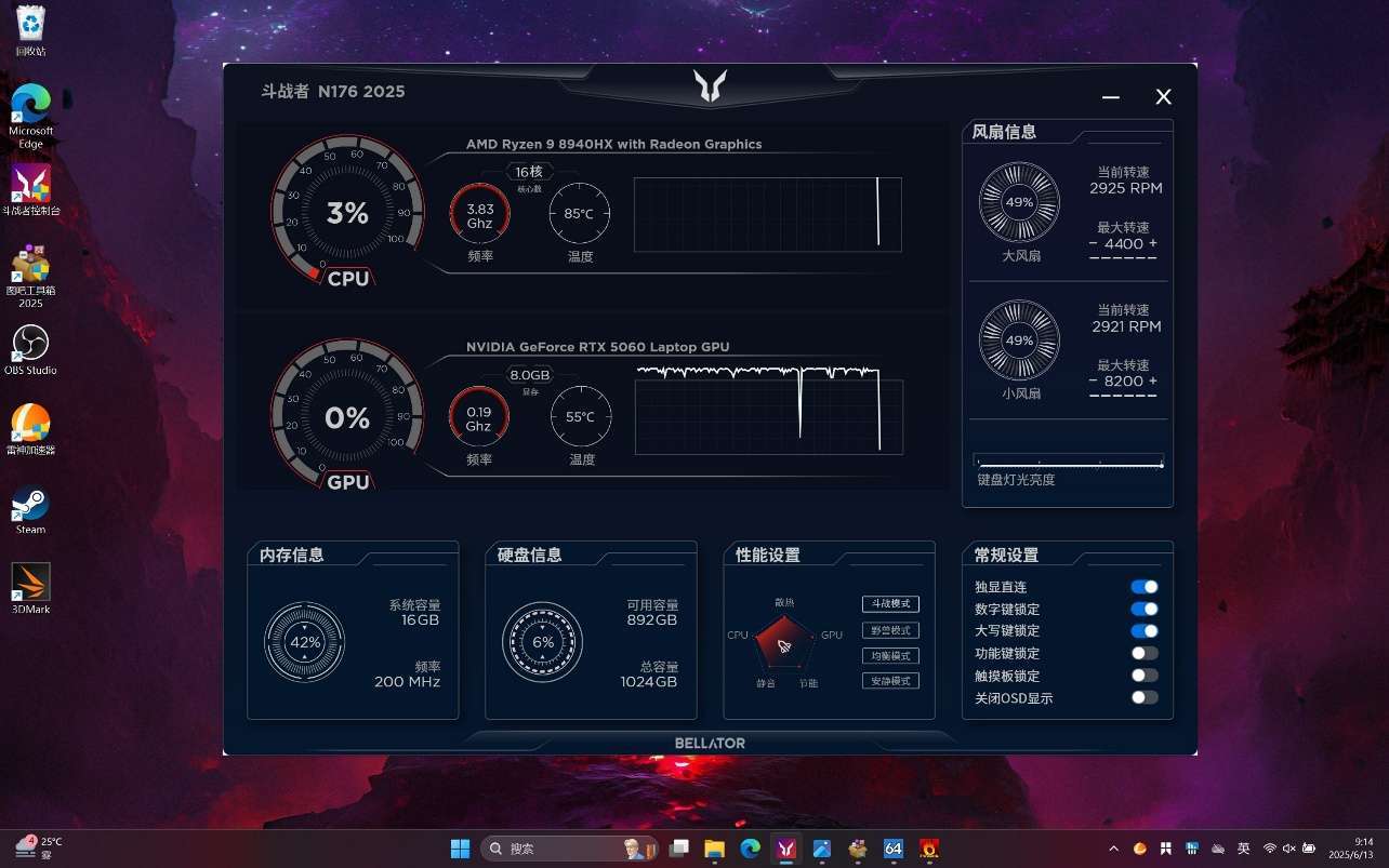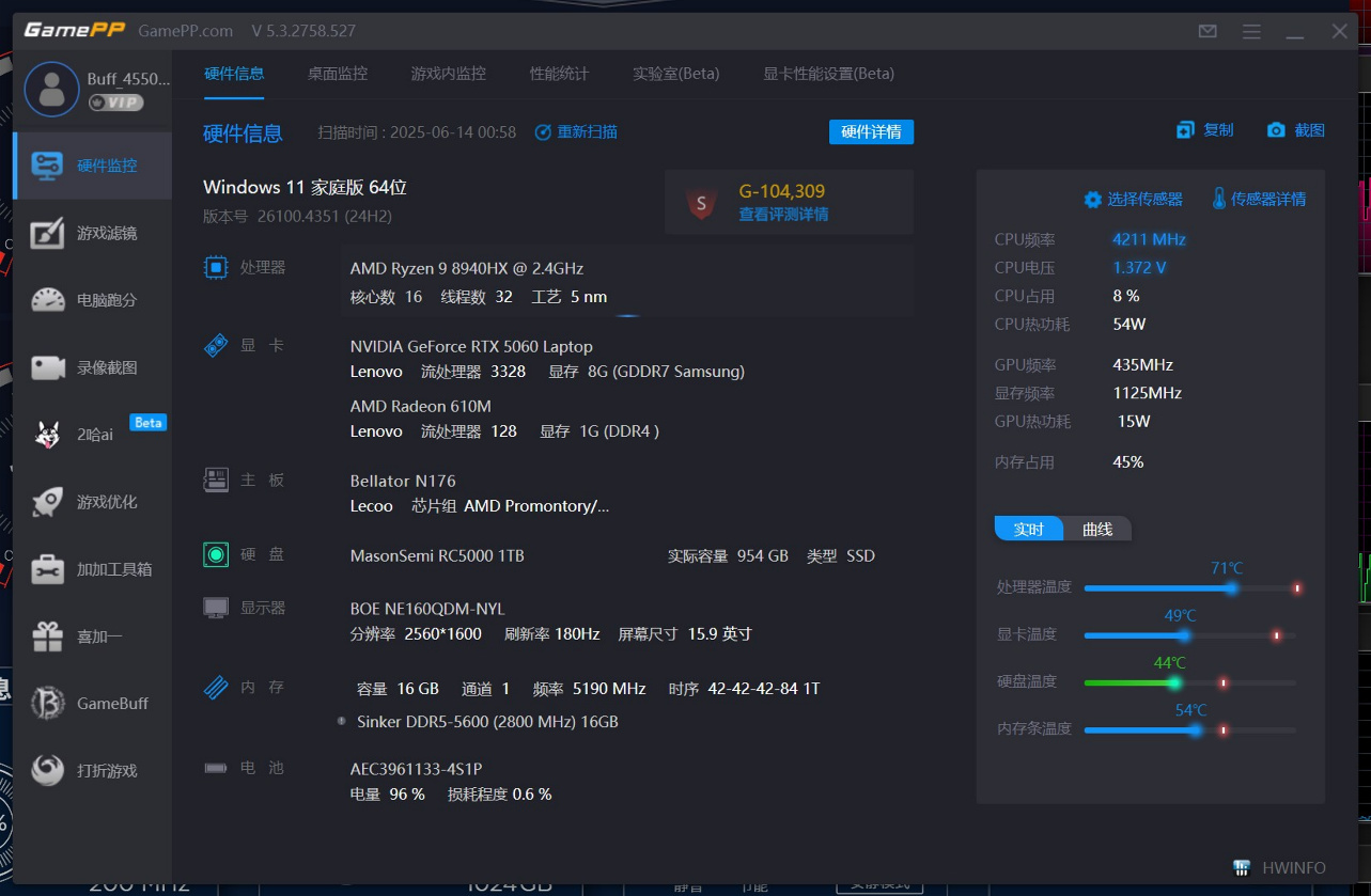 散热达成无虚标,满血5060显卡+16核处理器,支持独显直连,性能很顶