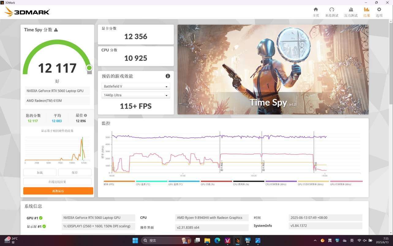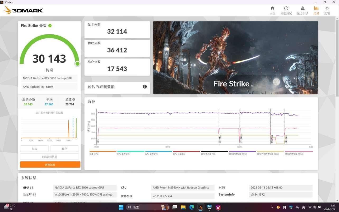 斗战模式下Fire Strike分数为30143分,Time Spy为12117分。