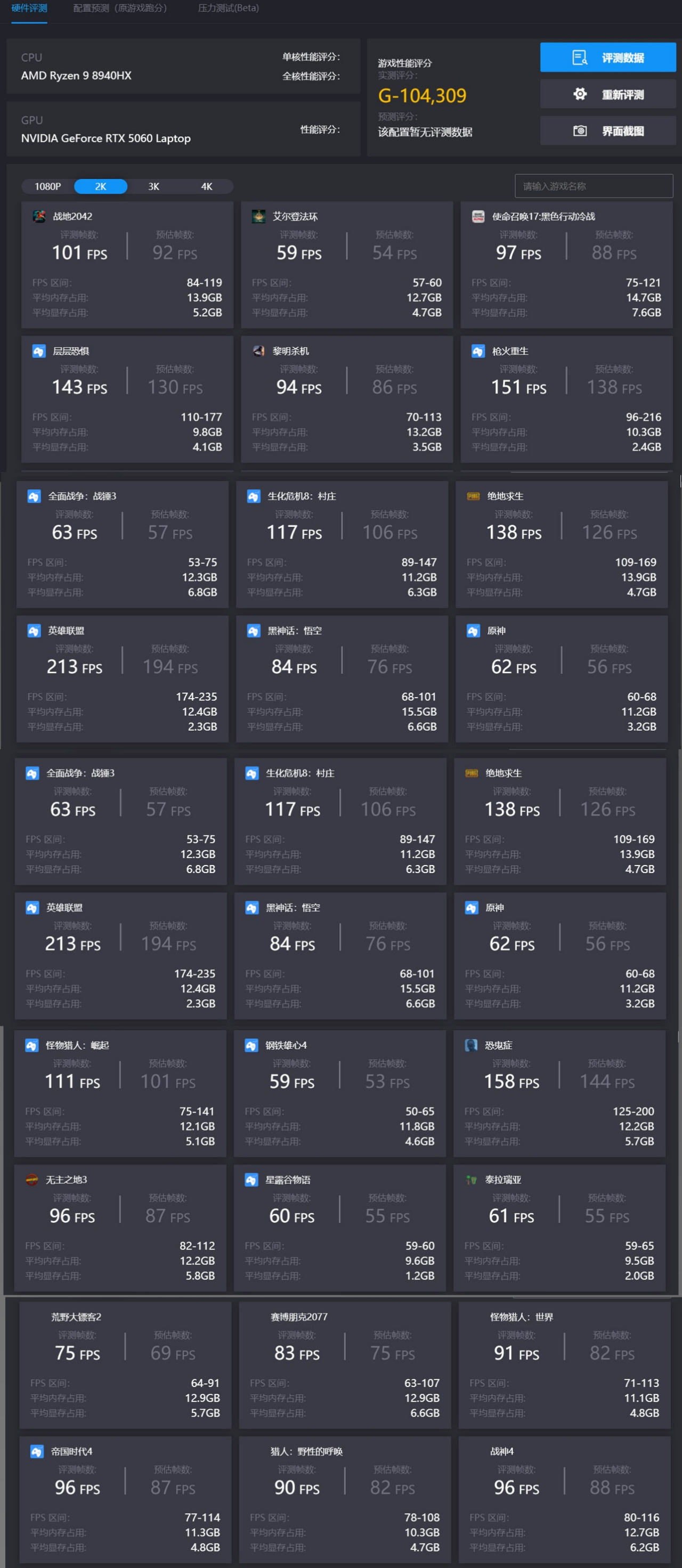 战7000锐龙版的游戏性能,大家可参考各家满血5060游戏本显卡的笔记本游戏效果。