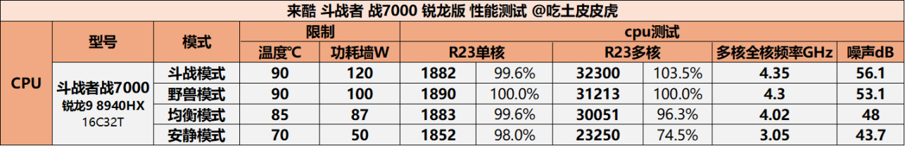 平时日常打游戏推荐使用野兽模式,收益最高,噪音功率只有斗战模式的一半,多核性能达成95%。