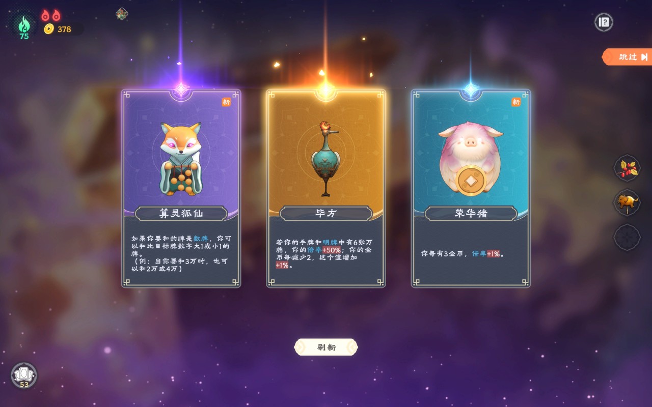 游戏虽然是以麻将为载体,但是肉鸽元素也非常丰富,甚至可以说目前感觉比起麻将游戏,更强调肉鸽玩法。