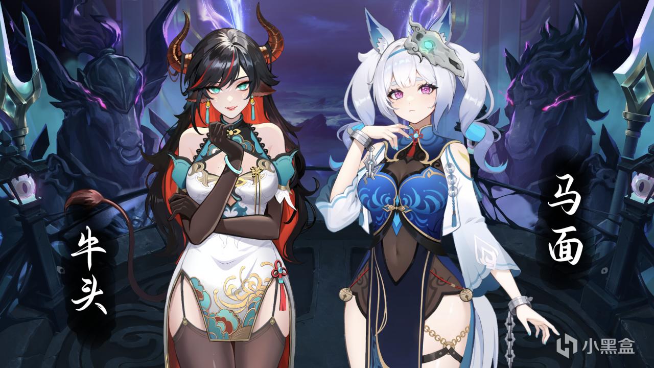 ↑这是黑白无常双人组,大概是游戏里最有少女感的角色,笨蛋黑无常用的武器是锁链,生气时乱甩还会不小心把自己捆绑起来。(可惜不是龟甲敷)