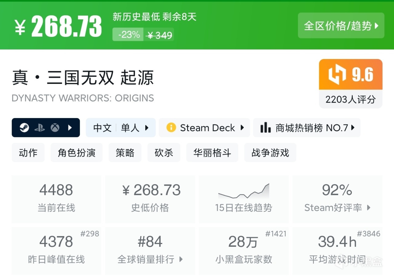 割草爽遊,非常好玩。今年沒出多久就新史低了,雖然只比上次便宜幾塊錢,但蚊子腿也是肉