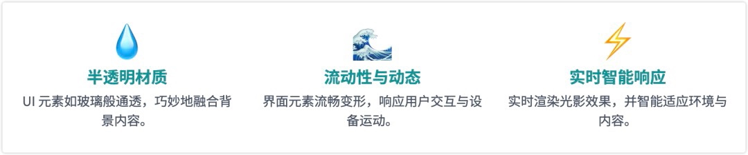 Liquid Glass 的核心视觉特征是半透明性、流动性和实时响应能力