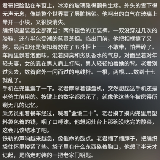 我想,这一定是因为,人们在君哥身上看到了自己未来的影子。在生育欲望大幅下降的如今,我们是否也会被社会所抛弃?是否也会无法理解新科技?是否也会在奋斗一生之后走向隐入尘烟的结局?