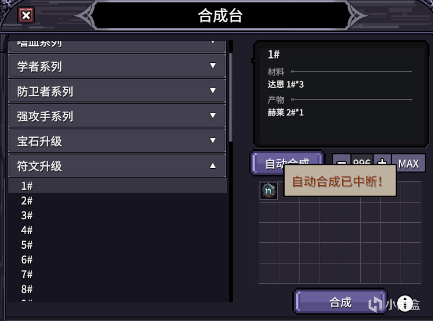 經過一段漫長的時間後,終於打過了65級副本,合成臺可以解鎖自動合成啦!自動合成可以把倉庫頁面的第一格“寶石倉庫”裏面的寶石以及符文自動合成。不過不能一次性全部合成,它是自動的一次一個在那邊工作的,有點慢,不過也符合該掛機遊戲!