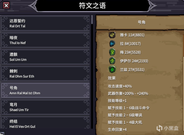 除了打上寶石外,還可以打“符文”形成“符文之語”特性。通過點擊上方圖片最下面的圖標後,可以查看“符文組合”。可以看出符文之語的效果是非常強力的。