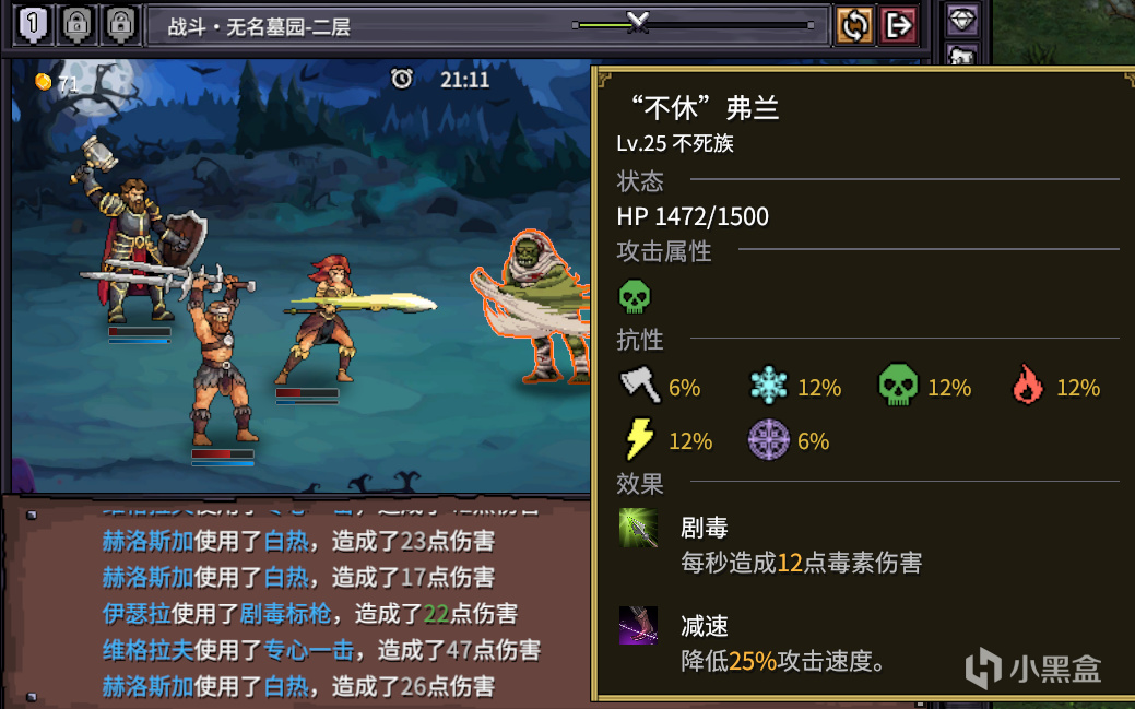 在掛機戰鬥過程中,要小心遇到“下圖這種帶有“特殊屬性標識””的敵人。這一類基本就是精英怪,回血速度非常快傷害也很猛,如果不能在十幾秒內擊殺的話,就會處於無休無止的狀態中。所以建議直接逃跑,不然簡直就是在浪費時間!