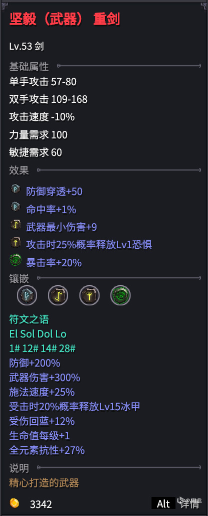 通過以上三種辦法,玩家後期可在帶孔的裝備上鑲嵌符文來達成“符文之語”效果。如下圖所示。