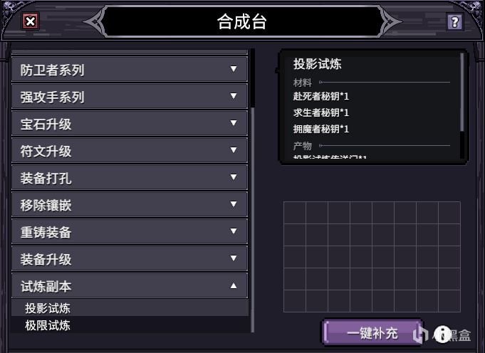 當蒐集完後便可以在“合成臺”處開啓試煉副本“投影試煉”。