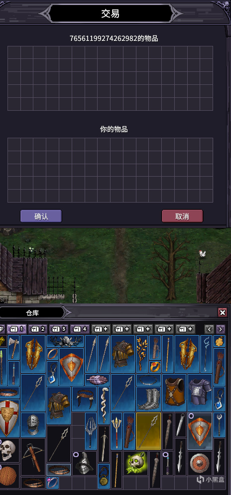 下圖爲玩家交易界面,更下方是玩家當前的倉庫裝備。直接選擇想要交易的裝備拖到交易欄即可。