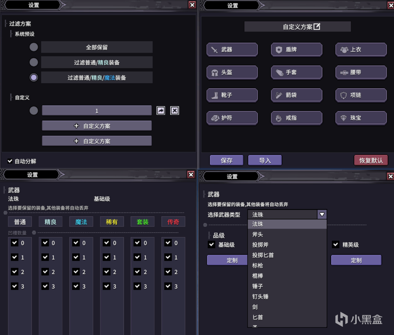 當玩家在掛機刷取裝備的過程中,可以使用系統設置中的“裝備過濾”功能,用來過濾掉一些沒什麼用的東西。以免掛機一段時間倉庫就滿了!該功能需要吐槽一下,設置起來有一點麻煩!