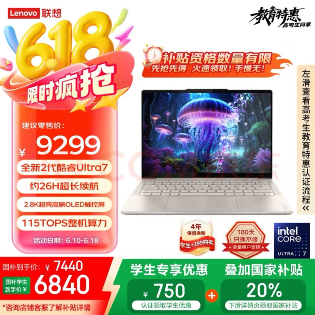 屏幕方面,YOGA Air X配备了一块14英寸的2.8K OLED屏幕,支持120Hz刷新率和100% DCI-P3色域,为用户提供了出色的视觉体验。此外,还支持硬件级防烧屏保护和烧屏保修服务,确保了屏幕的持久耐用性。