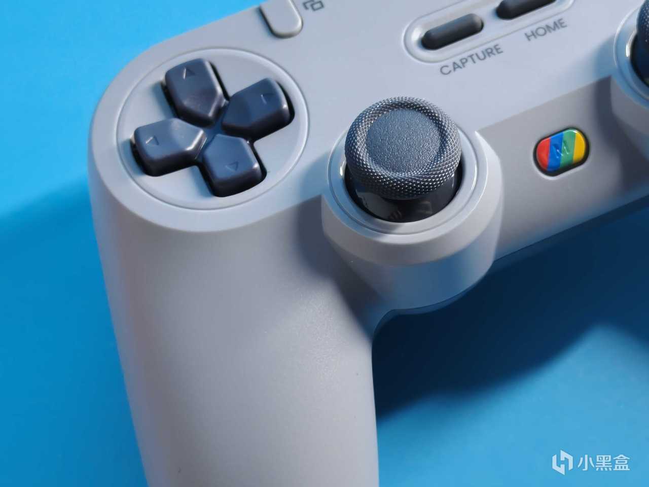 靈狐一共有兩款配色,分別是簡韻白和復古灰,這兩個配色我更喜歡灰色版本,這次主打的外形就是一個復古對稱設計嘛,加上這個復古灰色配色才感覺味道對了,而且灰色在ABXY鍵中間有絲印彩點,立馬味道更衝了。