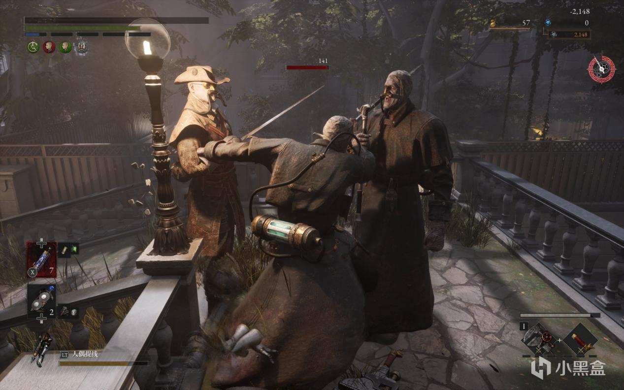 二者之间的羁绊还不仅如此,看似你是在以一敌二、需要同时面对两个敌人,但实际上控偶师不愧是控偶师,人偶的每一个动作都是在控偶师的操控下才完成的,因此当你和控偶师缠斗时,你能从控偶师的每一个抬手、每一次遥控中清晰地感受到人偶将在何时、从哪一个方向进攻,进而实现躲闪。这一套动作连携设计听起来倒是容易,实际上要想实现起来、尤其是把这些细微的连携穿插到控偶师本体连续不断的攻击中又能让玩家注意到,不知道制作组花了多长时间打磨才能使这些微动作让玩家产生本能的应对方案。