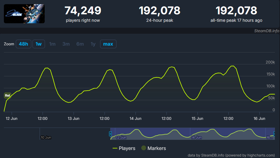 《劍星》在PC平臺表現亮眼,Steam同時在線人數峯值達192,078人,成爲PlayStation移植PC最成功的單人遊戲之一。其成功也帶動了Shift Up後續作品《Project Spirits》等IP的關注度。