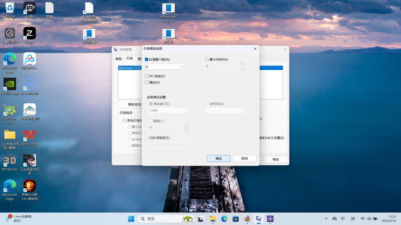 點擊高級選項,對處理器核心數進行編輯
