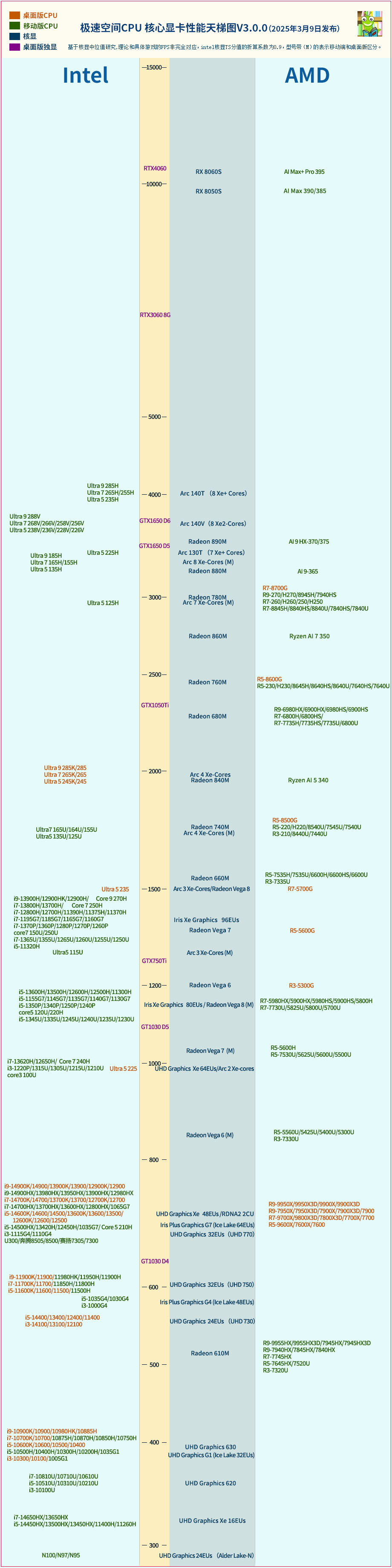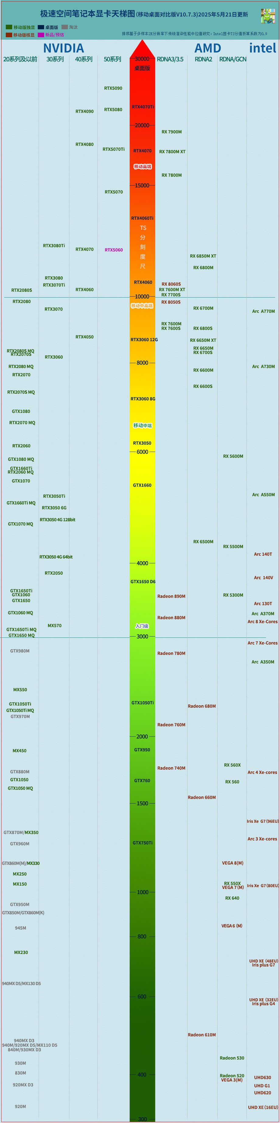 核显天梯图(中轴含台式机主流型号显卡对比):