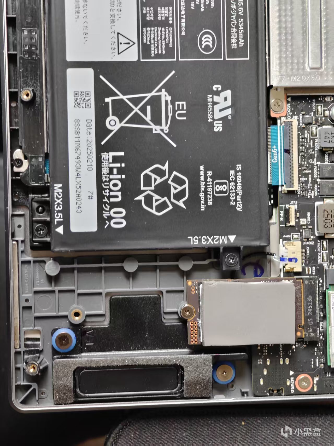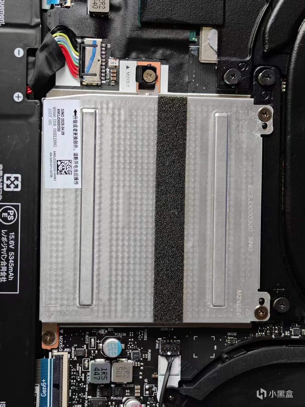 內存在屏蔽罩下面,是兩個插槽,可以替換和升級。