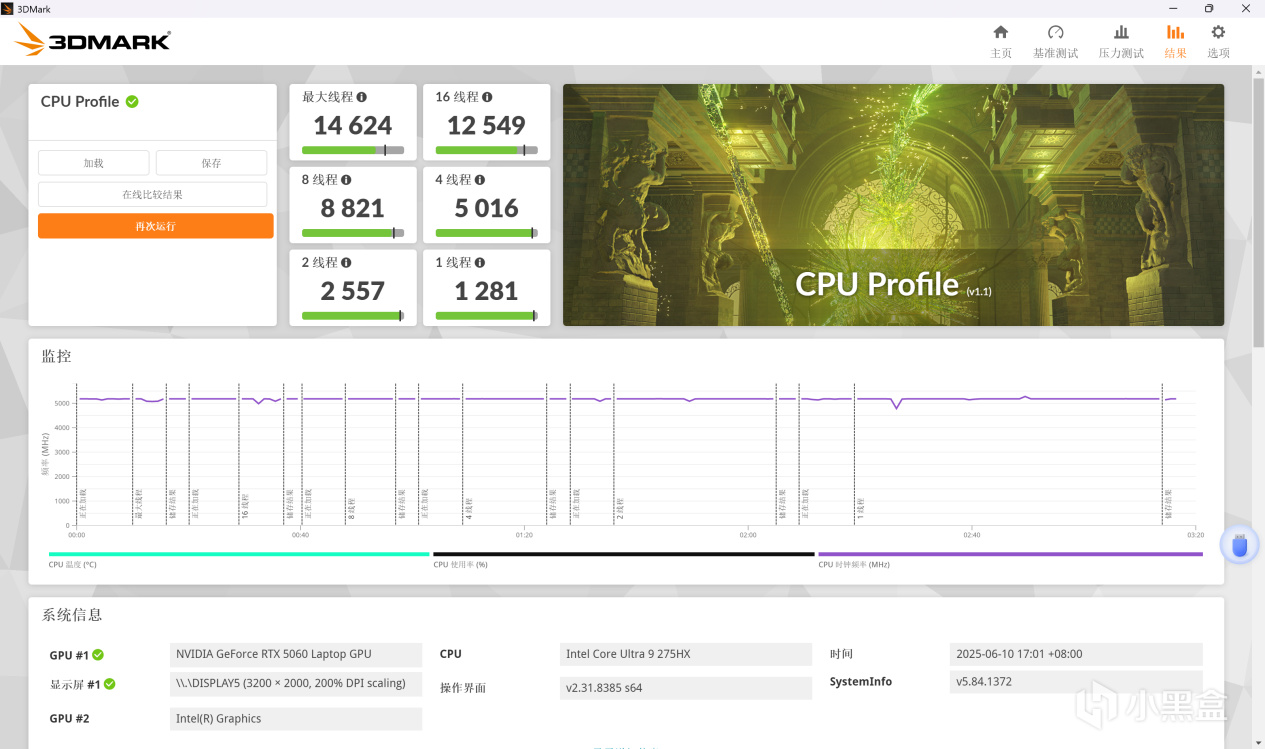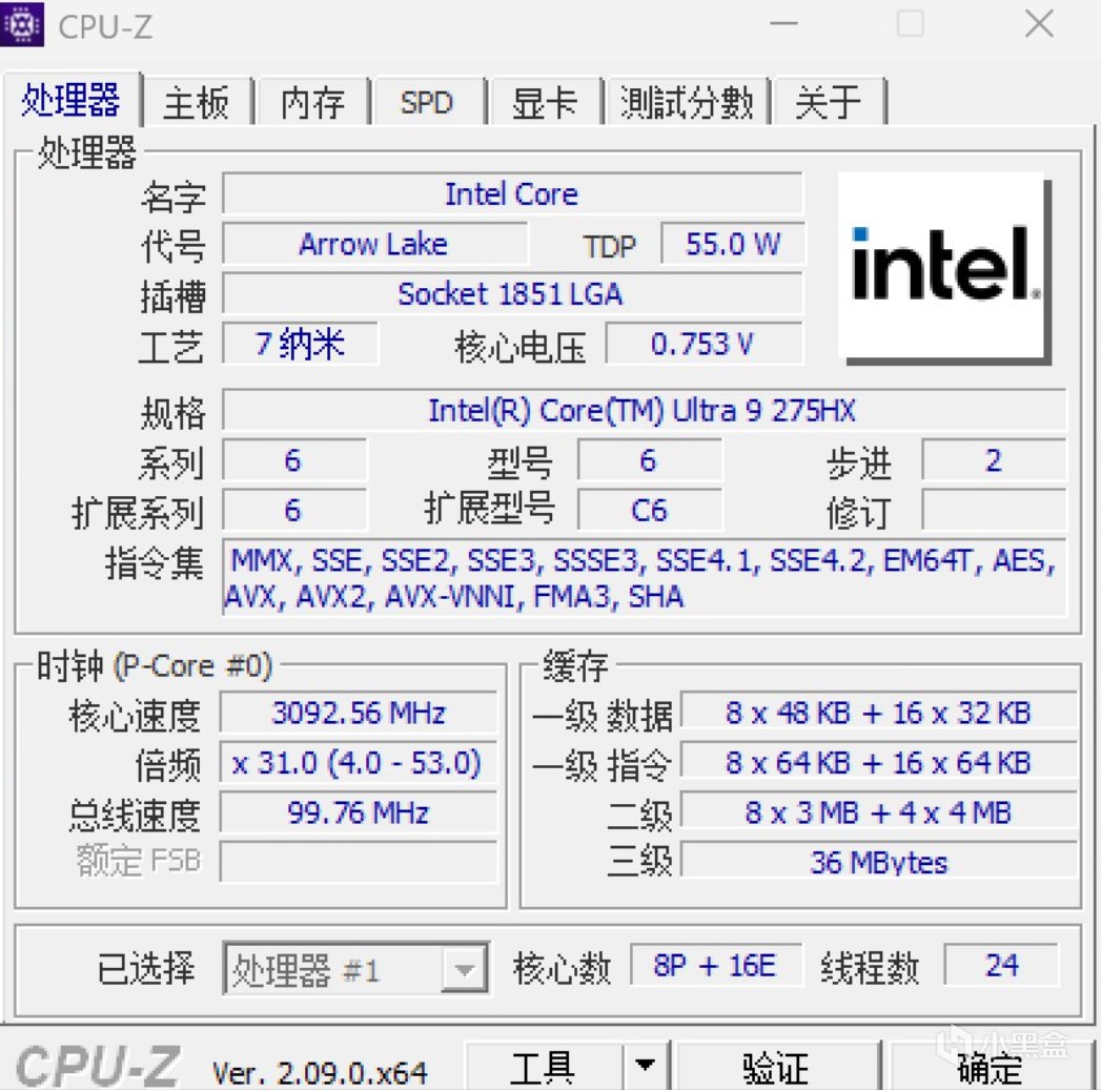 CPU是酷睿Ultra9 275HX,屬於Ultra系列HX最新一代的平臺,8P16E 24核心24線程。睿頻5.4G。創意設計相關對多核性能比較敏感。