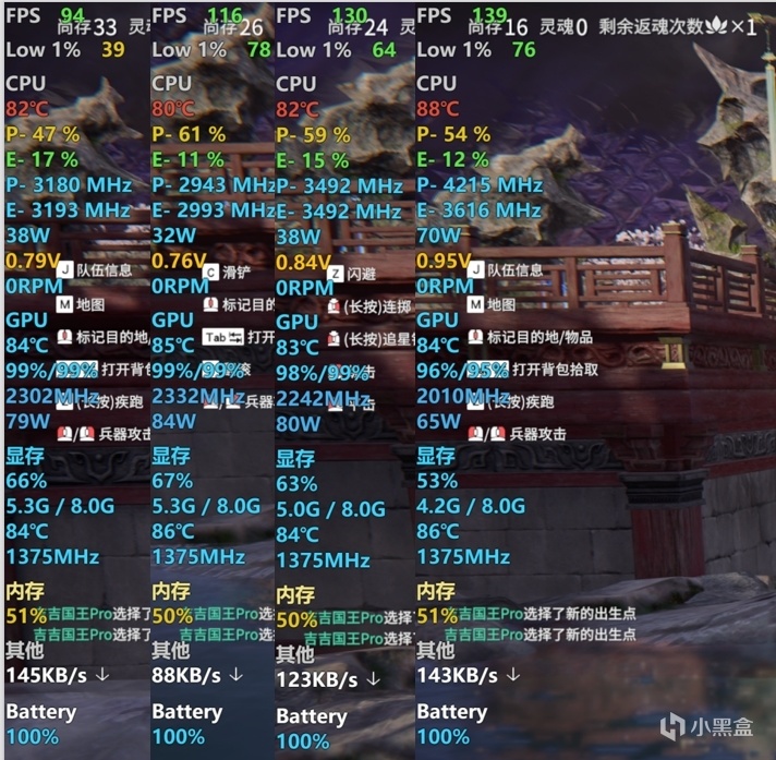 • 高畫質下,平均幀數116幀,1%low78,到高畫質就流暢了,116幀也算是暢玩水平,受限於移動端CPU單核性能,永劫無間優化也一般,跑不了非常高幀,我建議一般都開高畫質即可。
