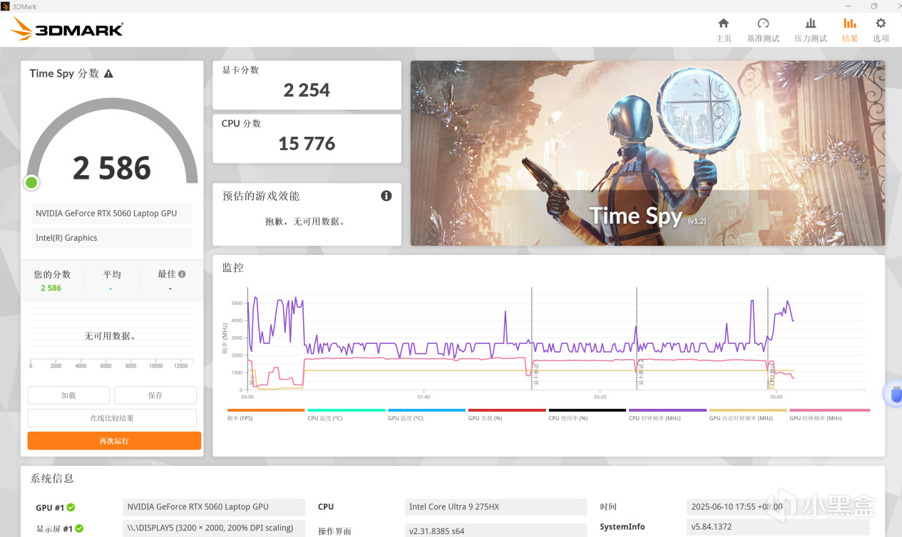 TimeSpy跑了兩次,一次是野獸模式,一次是節能模式。