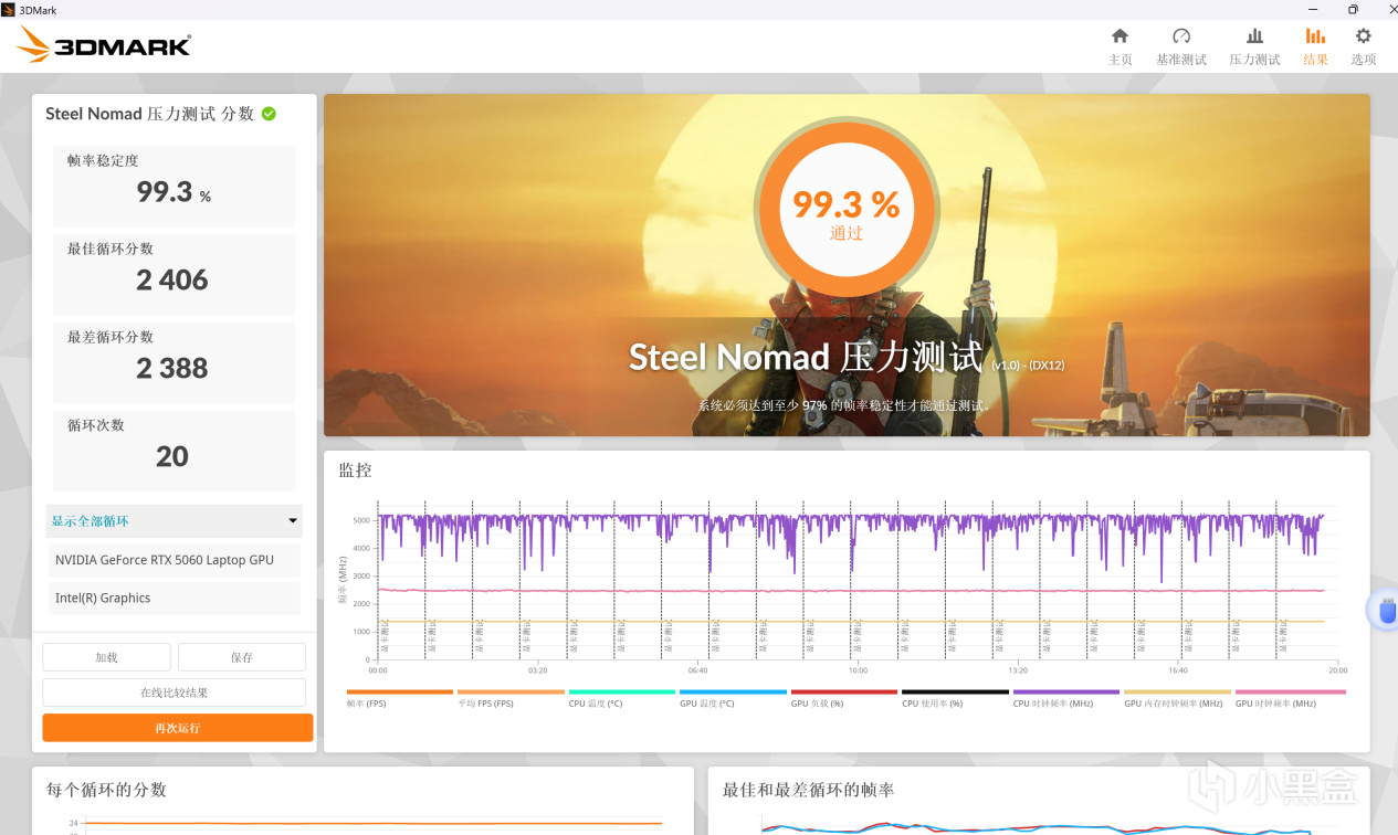 幀數穩定程度99.3%通過,散熱是完全沒問題的。