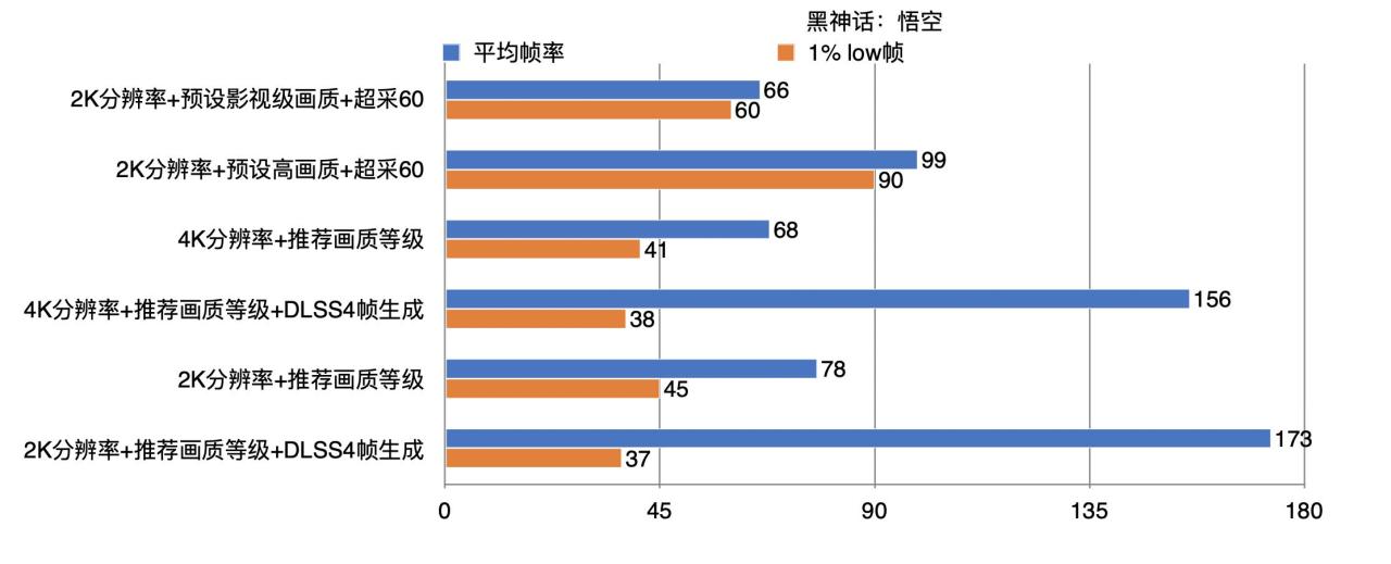 游戏性能我们测完了,我的结论是,机械师曙光S这台机器打游戏太舒服了!噪音低,主流游戏都非常丝滑,在2K分辨率下基本通杀,没有什么短板。而且开启50系独家DLSS4帧生成后,性能暴涨可达一倍以上!用甜品卡开4K分辨率玩游戏也是可行的!
