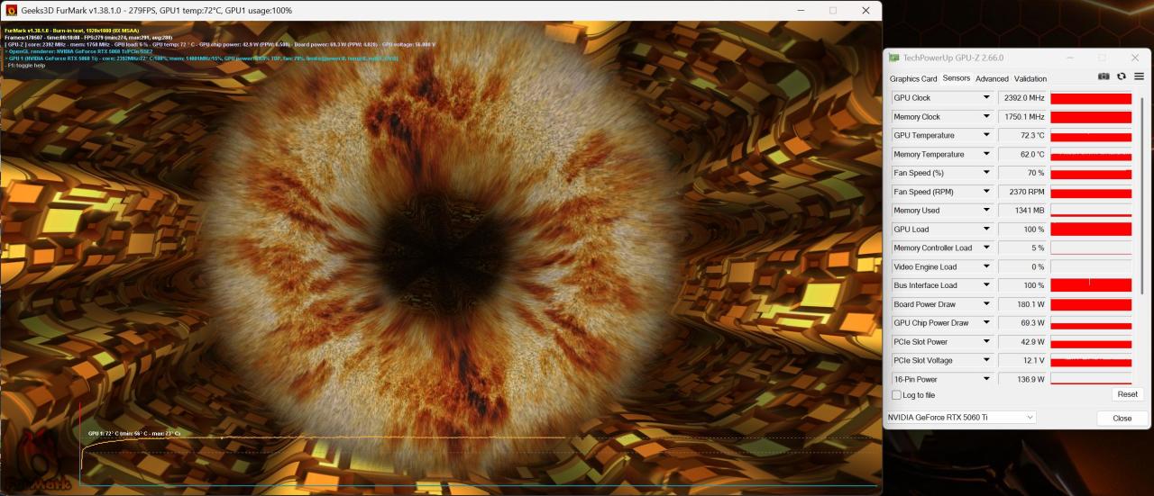 用甜甜圈烤机,供电180W妥妥的,散热也很OK,室温30度的情况下,最高温72.5摄氏度。