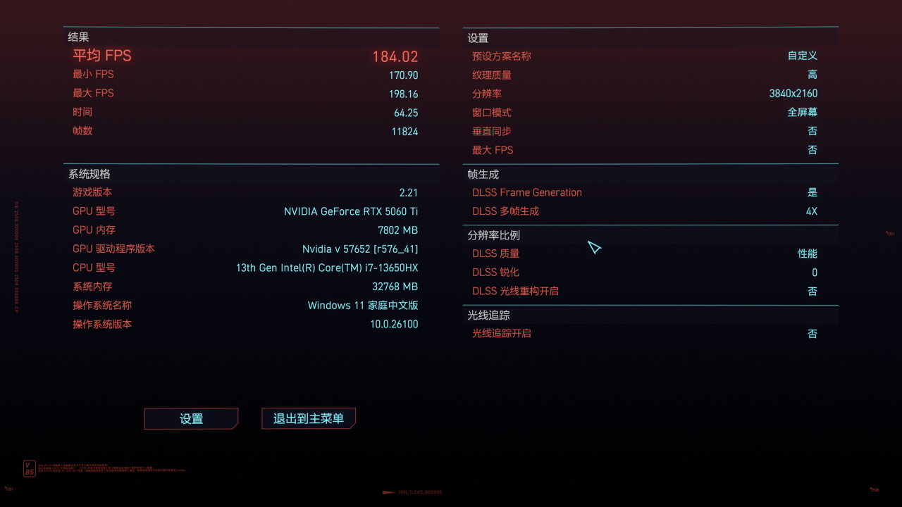 没想到吧?60Ti显卡也能在4K模式下,以184的电竞平均帧玩《赛博朋克2077》!