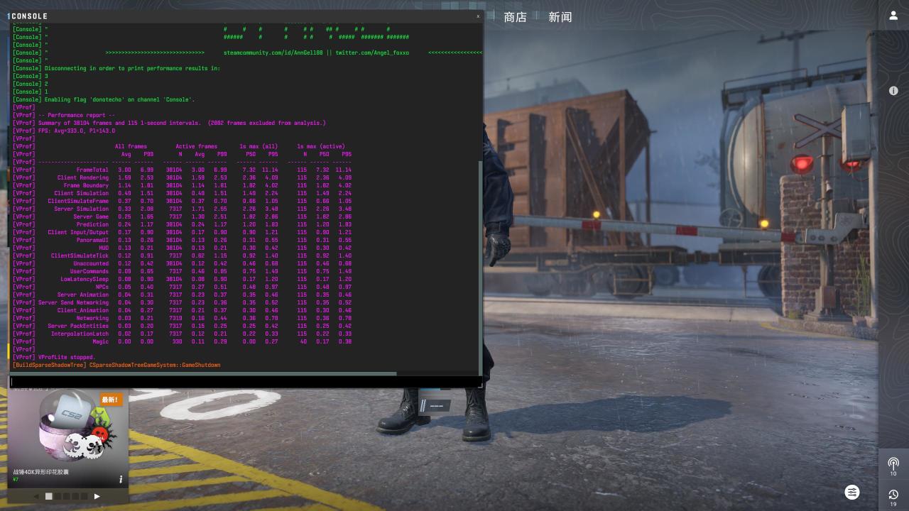 1080P+中画质,平均帧率356,1%low帧148,流畅度进一步提升。相当丝滑,跑满1080P320的顶配FPS显示器也是妥妥的。