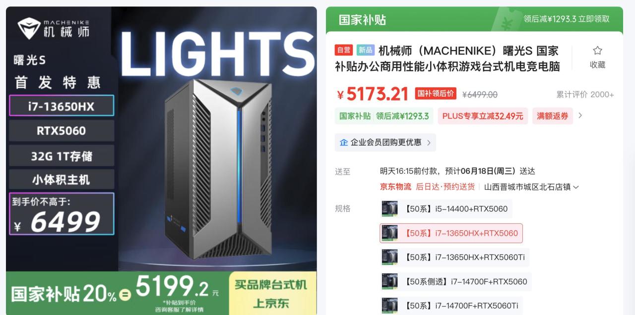 而机械师曙光S的5060显卡机型,在国补后入手价低至5199元,且它的游戏性能仅比国补价6399元的5060Ti款低约10~15%,性价比非常出色,更适合大多数玩家,我个人尤为推荐。