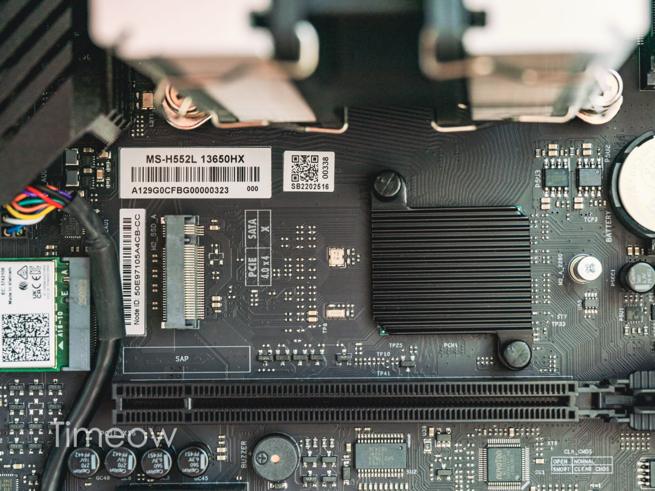 因为这个ITX主板太小了,但它依旧给了两个SSD的M2插槽,一个在前、一个在后,而预装的1T固态硬盘在主板后方,正面留空方便我们自己加装固态。