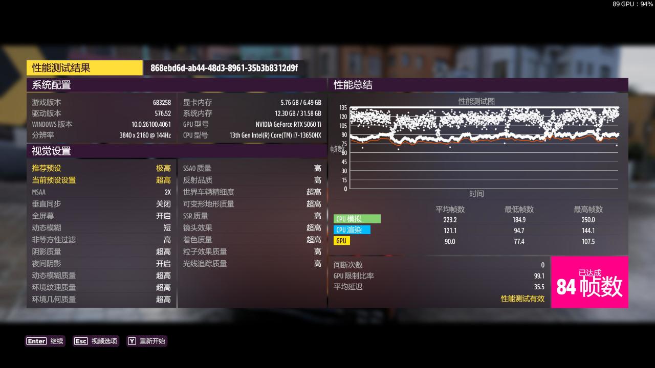 4K分辨率+预设超高画质,可以达成84帧的目标,GPU平均帧率90。