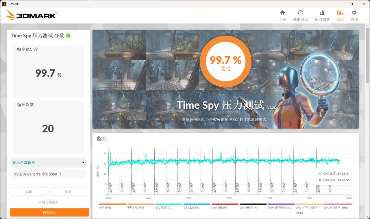 3DMark TimeSpy压力测试通过率99.7%,体质不错!机械师选料可以啊~