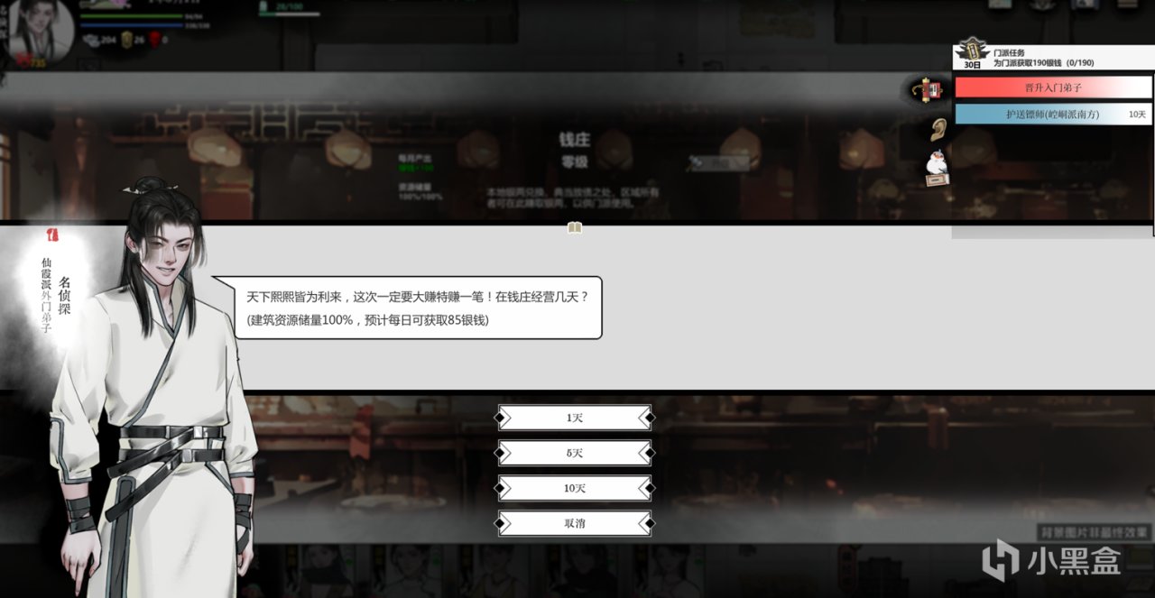 不仅如此,《龙胤立志传》里门派每个月还会举行会议,按照弟子的功绩论功行赏,并且进行下一个阶段的业务安排,我们还可以再门派里选择任务完成,比如去钱庄里经营给门派赚足银子,就能获得功绩。
