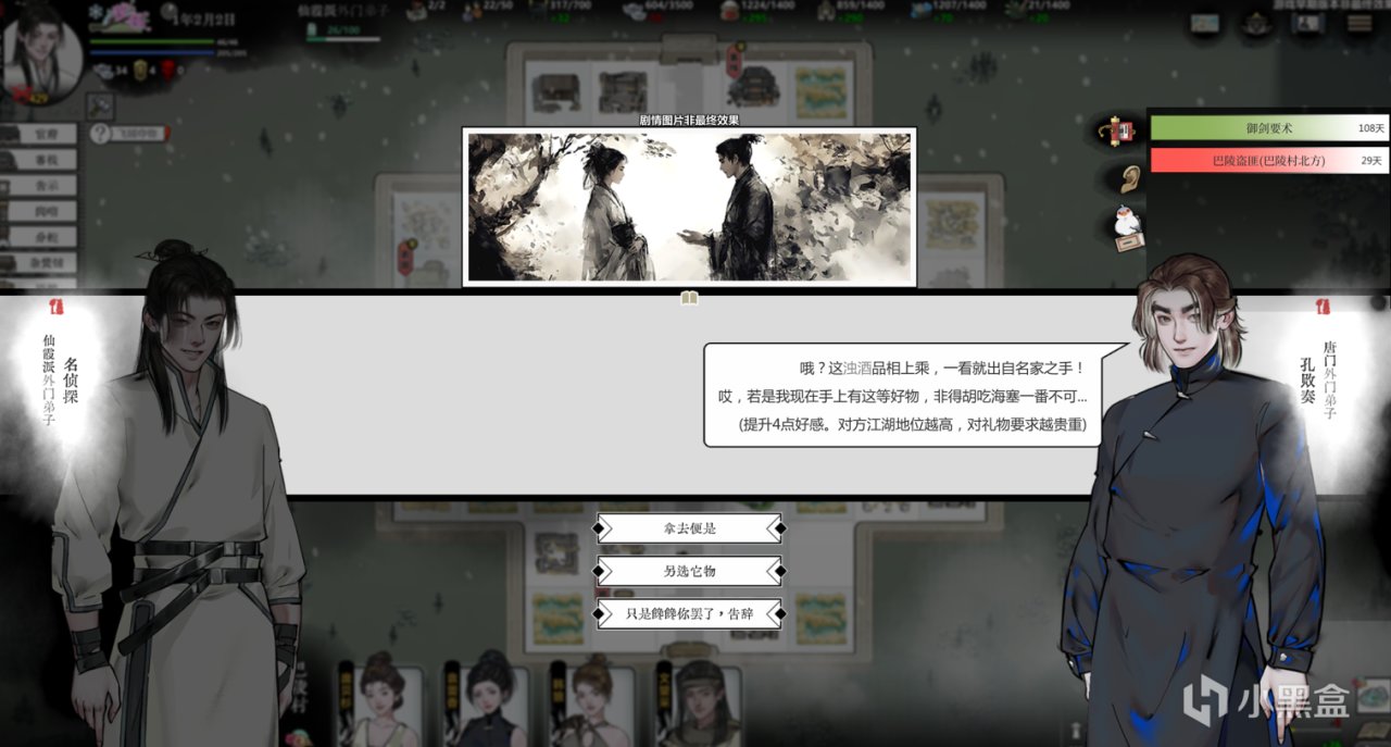 不过讲道理,这一块我觉得还是有提升空间的,我存档读档多次,发现偶遇的这些侠客基本都是随机立绘随机姓名,也就是纯纯的随机生成路人。