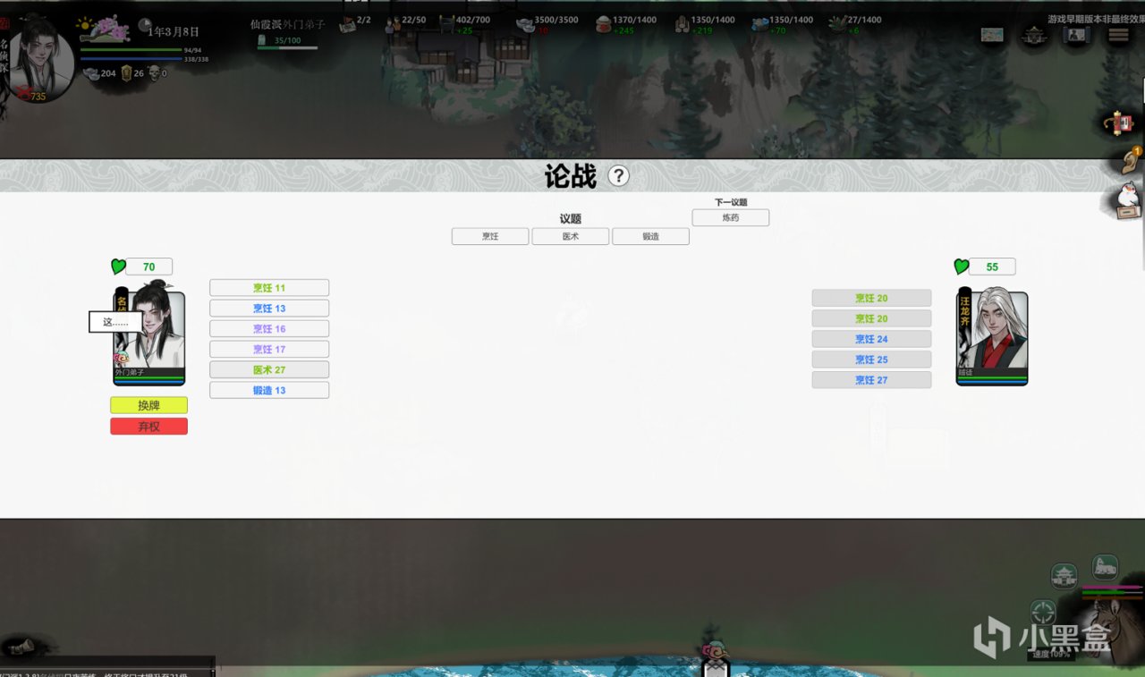 只见刚才还怒气冲冲的恶贼,突然就知书达理起来了,和我聊起了烹饪医术采矿毒术方面的技巧,甚至还看到了“道破”“怒骂”这样无视对面言论的辩论神技能。