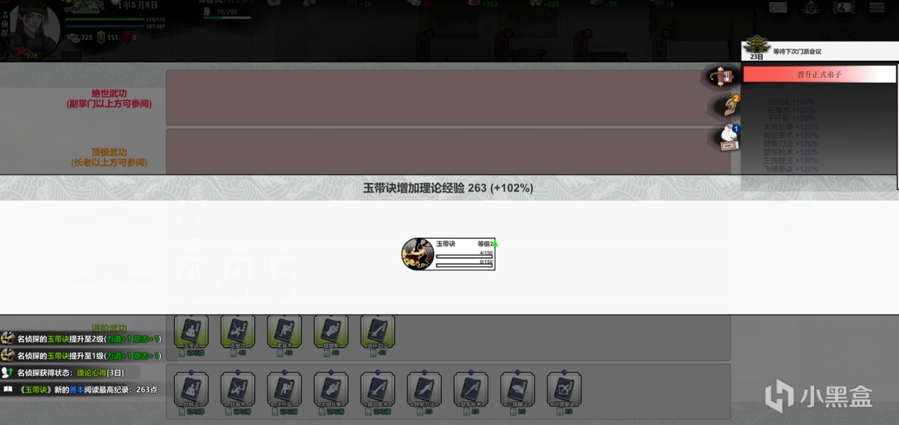 而功绩可以用来兑换更强力的秘籍,也可以拿来升级职位,职位越高,能学习的功法也就更多更强。