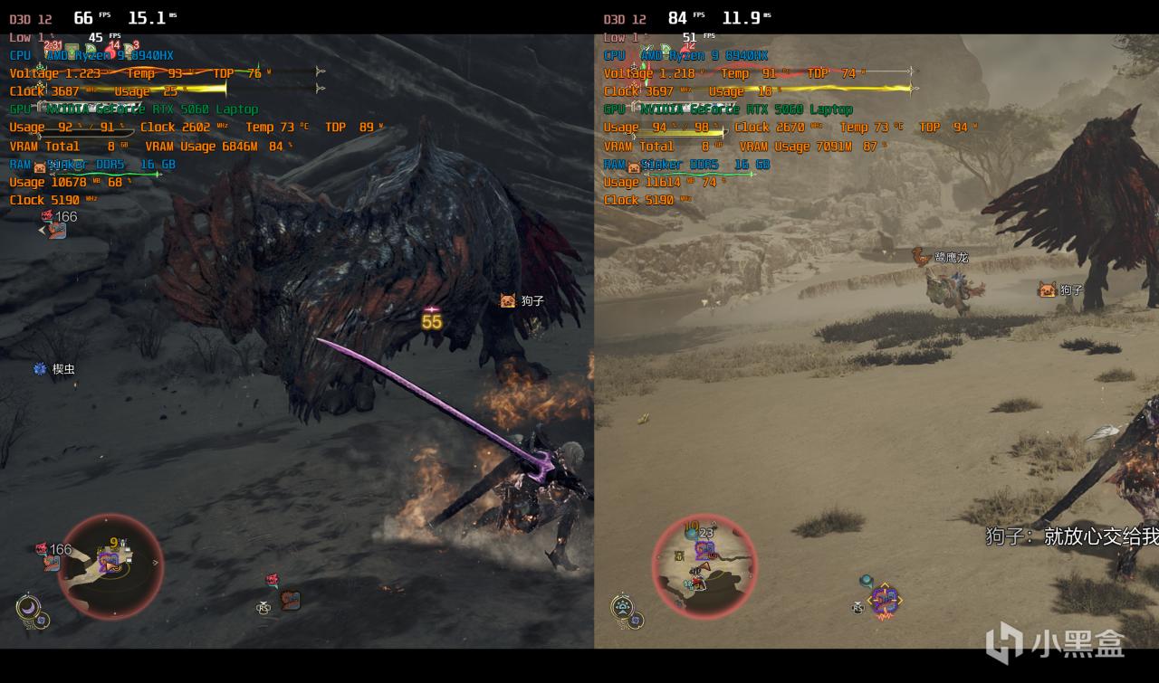 预设高画质,关闭DLSS的情况下,沙原打小怪在66FPS上下,开启DLSS平衡之后,可以涨到84FPS左右,这游戏比较吃显卡并且发售至今优化一般,因此几十FPS的表现不奇怪,这是打小怪负载低一些,如果是极端天气打煌雷龙这种满屏特效的,FPS还会再低一些,且会出现爆显存的现象,在2K下建议调低特效游玩: