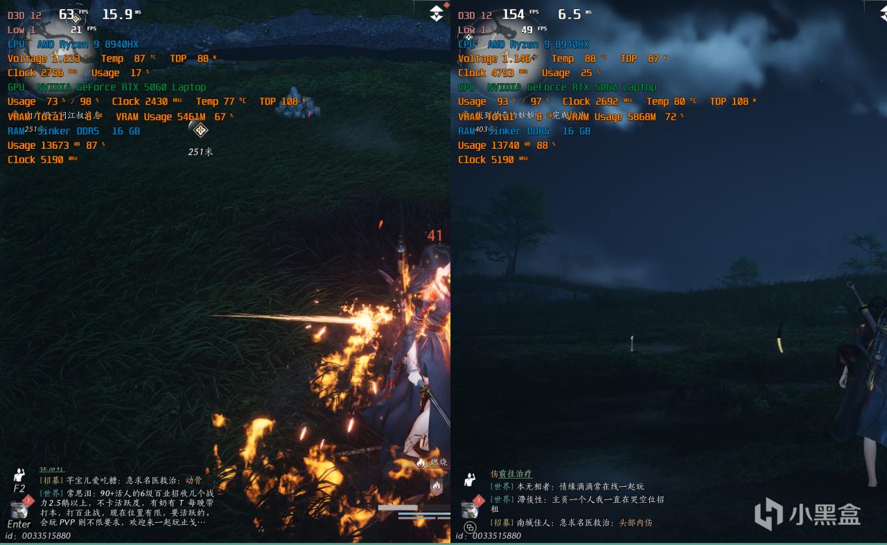 预设特效极致,DLSS关闭野外跑图63FPS上下,开启DLSS+2X插帧,开启Reflex,同场景野外跑图+打怪154FPS左右: