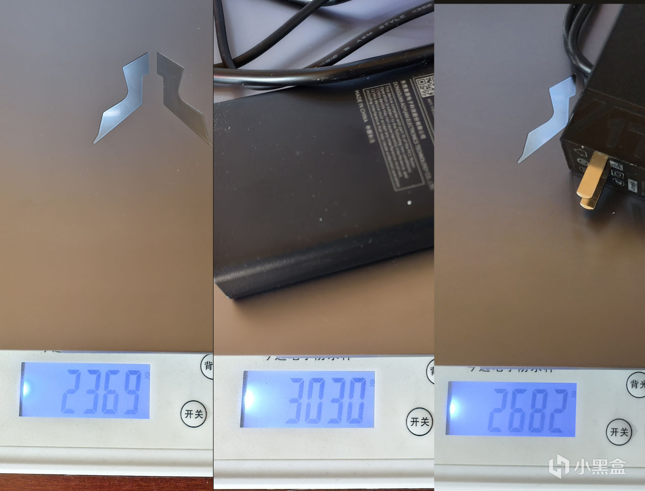 整机裸机重2.37kg左右,加上240W的电源适配器整体旅行重量为3.03kg,机器支持100W PD充电,因此这里拿拯救者C170适配器测了下,加一起2.68kg,外出没有重负载需求的,可以搭配一个100W以上的PD充电器使用: