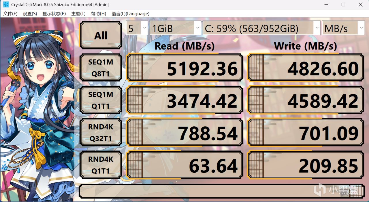 可以看到这块盘在大文件读写上可能稍微弱一些,玩游戏啥的其实日常大部分时候其实够用,实在对存储有要求可以考虑自行加装。